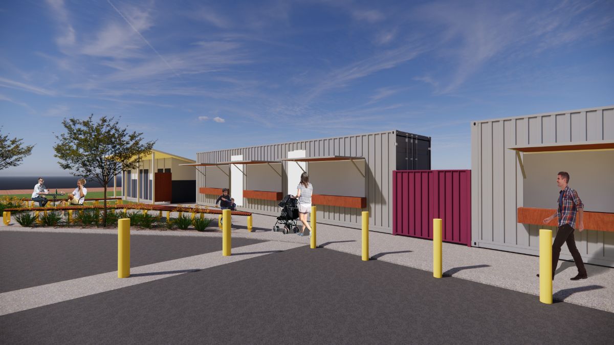 The project includes installing two upcycled shipping containers on the site, which will be used for pop-up markets, cafes and small business trading. Other project outcomes will include seating, lighting and landscaping.
