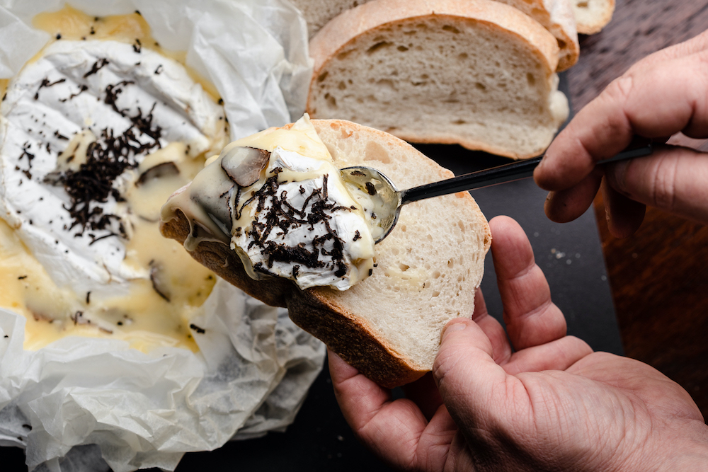 Cheese – cheese toasties, yum. Baked truffle brie anyone? The answer is always yes. A simple but very delicious way to enjoy truffle is by infusing some creamy cheese and baking. Here’s a very simple recipe.