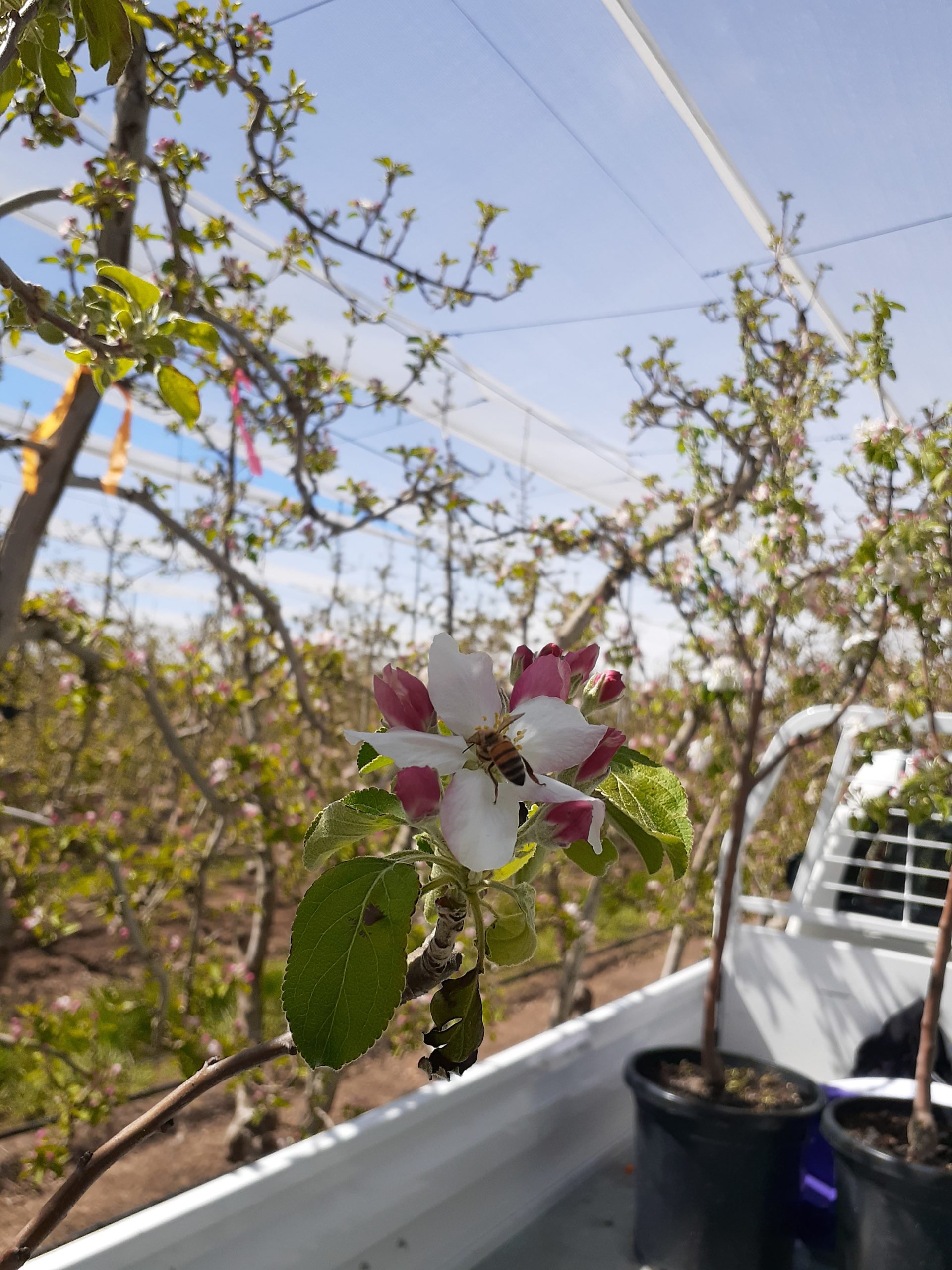 Scientists are exploring the use of mobile polliniser units to improve cross-pollination in netted apple orchards in a new trial being delivered through Hort Innovation in partnership with the University of Adelaide.