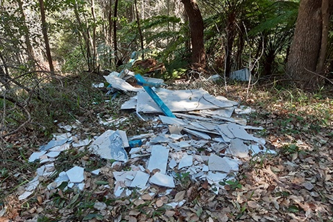In both cases the materials were remnants from renovations including fibro sheets, some of which were asbestos, tiles, timber and a fridge.