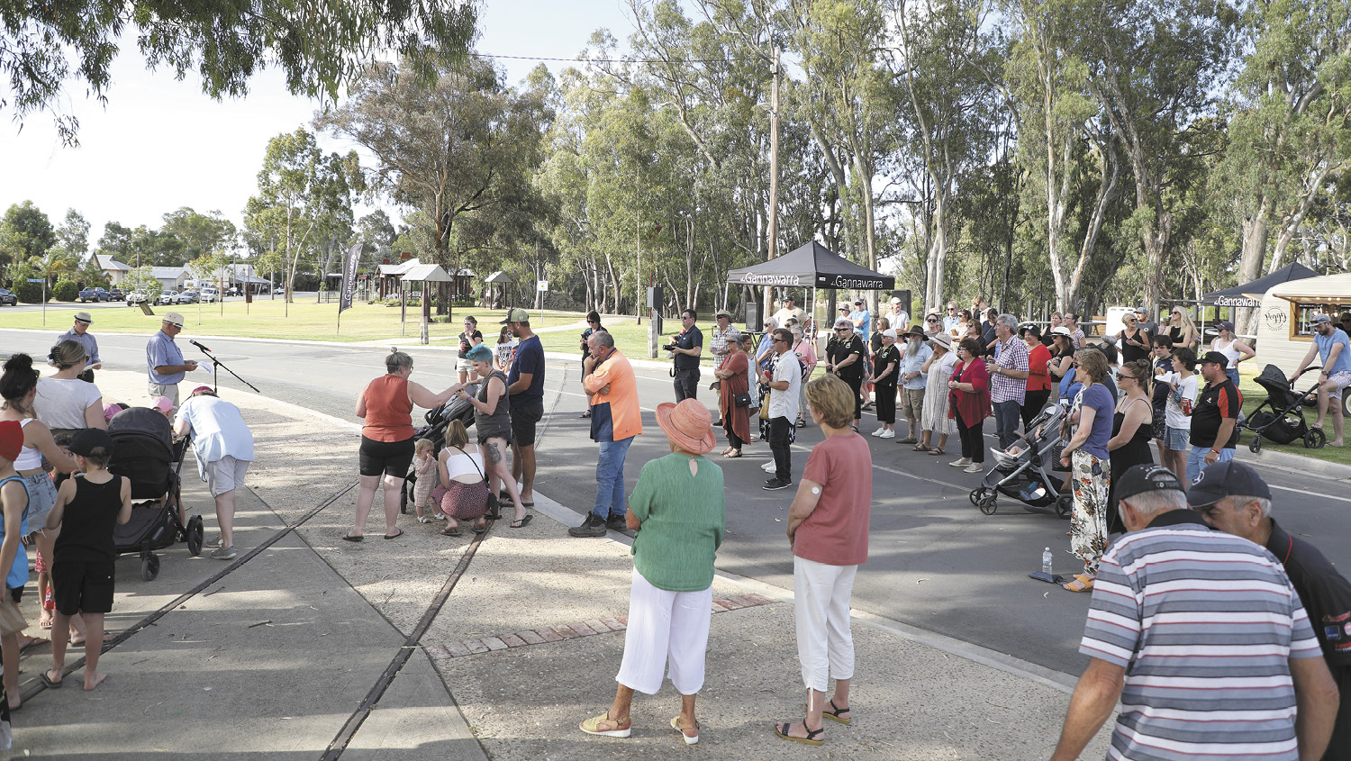 The afternoon started with a willy-willy blowing through the site, sending audio equipment and sanitising stations tumbling, and a teardrop Gannawarra banner was last seen heading over Gunbower Forest.