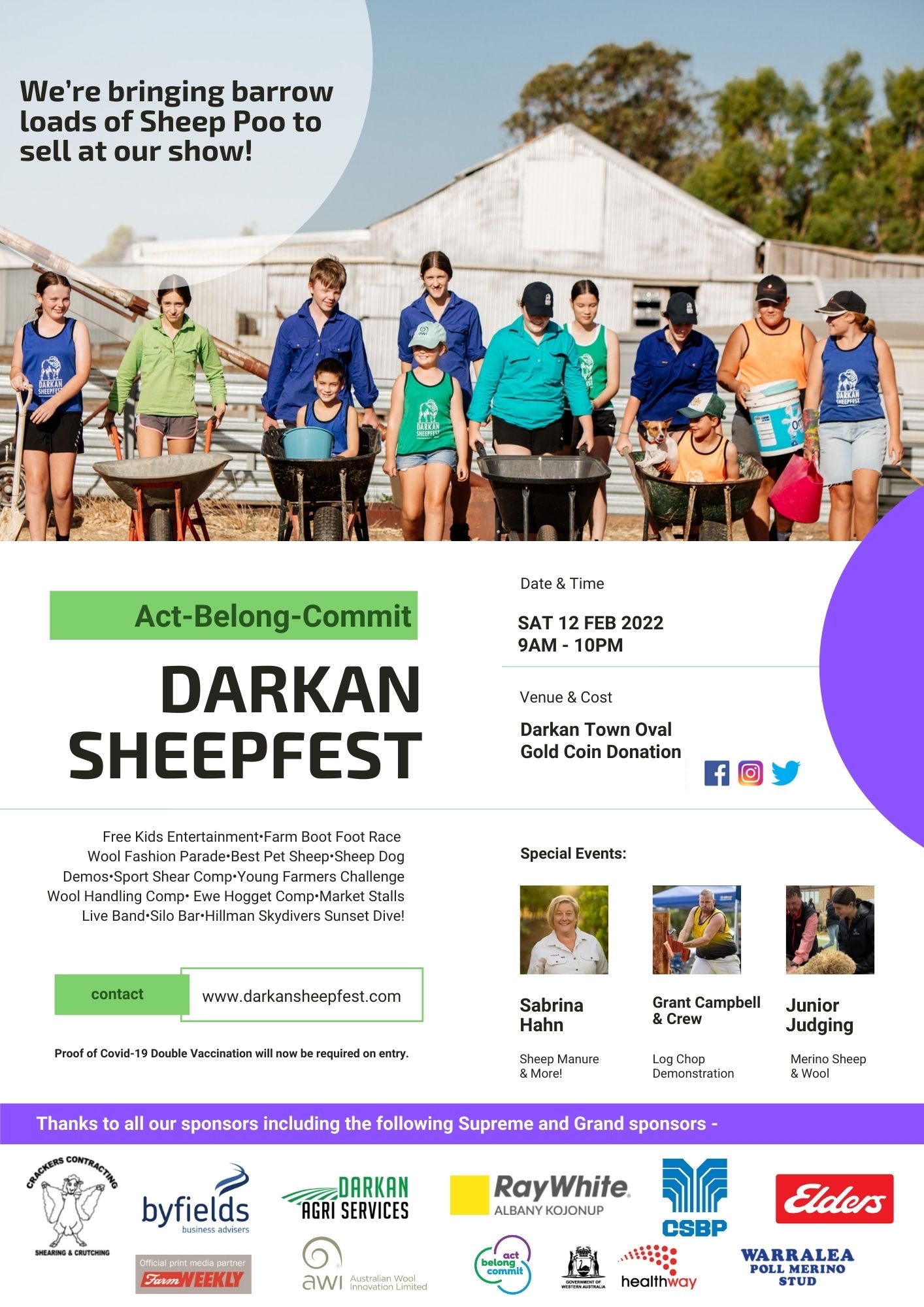 The Act-Belong-Commit Darkan Sheepfest is scheduled for Saturday 12th February 2022.