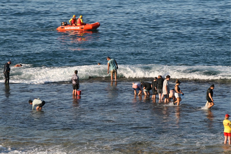 Yanchep Surf Life Saving Club and Marine Rescue Two Rocks volunteers were at the lagoon this morning keeping a watch on fishers searching for the reef-dwelling mollusc.