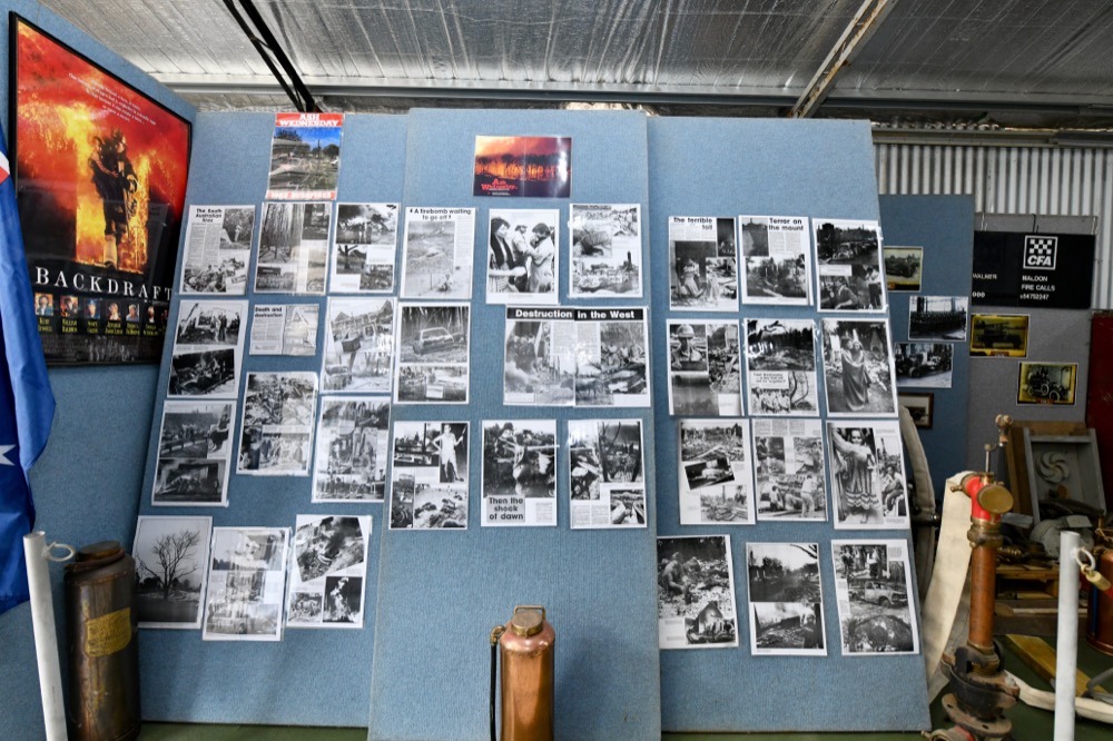 Daryl Walker, from the Maldon Vintage Machinery and Museum, has spent months putting together a tribute to those that lost their lives in the Ash Wednesday fires on 16 February 1983. The exhibition, consisting of newspaper articles and photographs, is informative and moving.