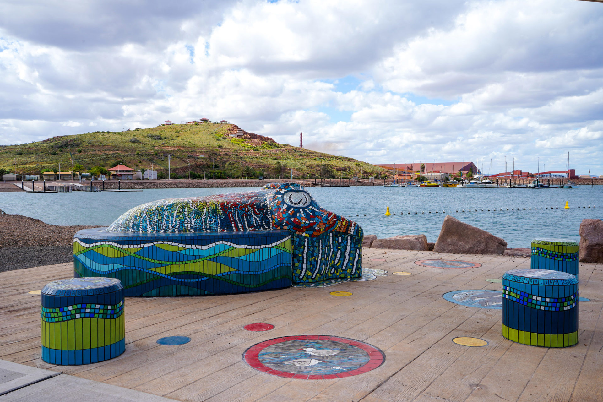 Whyalla’s inclusive cuttlefish throne, affectionately known as Craig, was created by artist Karen Carr (AKA Squashed Cocky). Working with the Whyalla community to celebrate the city’s marine ecosystem, Karen designed an installation that honours our world-famous Giant Cuttlefish aggregation, while also making a space for people with all abilities.