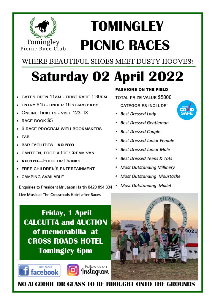 AgricultureFarmingNSWRacing Tomingley Picnic Races, 2 April 2022 By The Editor 14 March 2022 Recent stories Opening smarter pathways to cut landfill emissions and earn ACCU revenue: Wilson Contributor, ARR.News - Light Horse skills not lost Mark Collins, Corryong Courier - Environmental surveys continue Contributor, The Buloke Times - Farmers’ rights eroded Contributor, The Buloke Times - Fuel crisis hits hard Narrandera Argus - Ramsay local to captain Queensland Polocrosse team Ted Rogers, On Our Selection News - Getting fertiliser to farmers faster: Collins Contributor, ARR.News - $3 million boost drives groundbreaking koala research in Port Stephens: Watt, Swanson Contributor, ARR.News - Whales are making an appearance Coast Community News - Cohuna turns out for barefoot titles opener Contributor, The Koondrook and Barham Bridge Newspaper - Farmer left bone dry after fuel theft Contributor, The Koondrook and Barham Bridge Newspaper - LambEx26 program launch Contributor, ARR.News - Radical Right v Radical Left and the threat of the Age of Unreason Kookaburra, ARR.News - Renewed effort to supercharge faba bean breeding and expansion: GRDC Contributor, ARR.News - Elders bales on WA wool growers – Just the tip of the iceberg: Geoff Pearson WAFarmers Contributor, ARR.News - Load more The Editor Tomingley Picnic Race Club Purchase tickets Photos courtesy Tomingley Picnic Race Club Please leave this field emptyKEEP IN TOUCH Sign up for updates from Australian Rural & Regional News Manage your subscription We don’t spam! Read our privacy policy for more info. Thank you for subscribing for updates from Australian Rural & Regional News! By default you will receive all our newsletters. If you'd prefer to choose which newsletters you receive, go to the manage your subscription page make your selection. I'd love to hear from you if you have any feedback on the newsletter or the news platform or the news itself. Best Wishes, Fiona Fox The Editor Share FacebookLinkedinXPinterestWhatsAppEmailReddIt Previous articleTullibigeal Family Picnic Race Day, 26 March 2022Next articleWorld Heritage bid set to elevate goldfields tourism to the global stage Out Now! Corryong Courier, 16 April 2026 Mark Collins, Corryong Courier - Narrandera Argus, 16 April 2026 Narrandera Argus - On Our Selection News, 16 April 2026 Ted Rogers, On Our Selection News - The Buloke Times, 16 April 2026 The Buloke Times - Coast Community News, 16 April 2026 Coast Community News - The Koondrook and Barham Bridge Newspaper, 16 April 2026 Lloyd Polkinghorne, The Koondrook and Barham Bridge Newspaper - Allora Advertiser, 15 April 2026 Mim Rogers, Allora Advertiser - Murray Pioneer, 15 April 2026 Murray Pioneer - See all