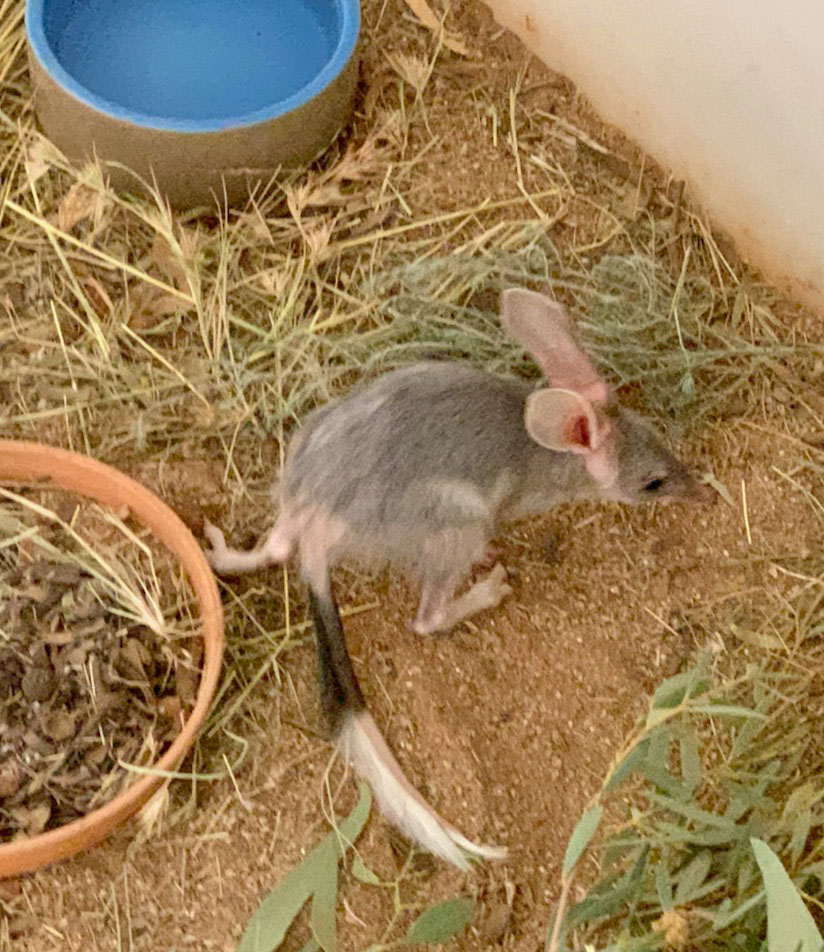 Little did Caz know, exactly how much of a ‘Star’ little Lukkanu would become! Raising him safely through those first few months, Caz delivered him to the Alice Springs Desert Park in December where the research team celebrated his arrival. As the ONLY wild-born Bilby brought into care, in the whole NT in over a decade, Lukkanu brings a unique gene quality into their breeding program, so the little fella is receiving absolute VIP treatment!