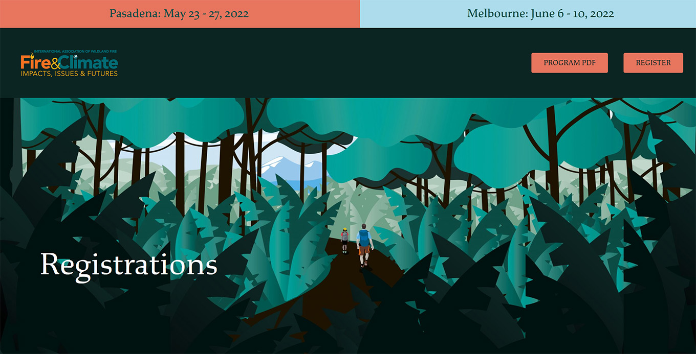 Fire and Climate 2022 (Pullman Melbourne, Albert Park, Monday 6 to Friday 10 June 2022) is an International Association of Wildland Fire (IAWF) conference on Fuels and Fire Behaviour, Human Dimensions and Safety Summit, in the tradition of past IAWF conferences. The same conference, but with a separate program, is happening in California this week.