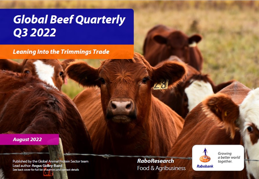The bank forecasts the volume of trimmings consumed globally to remain strong and potentially increase in the second half of 2022 as consumers continue to trade down to lower-value beef cuts and cheaper proteins. Trimmings are typically used in the production of ground or minced beef.