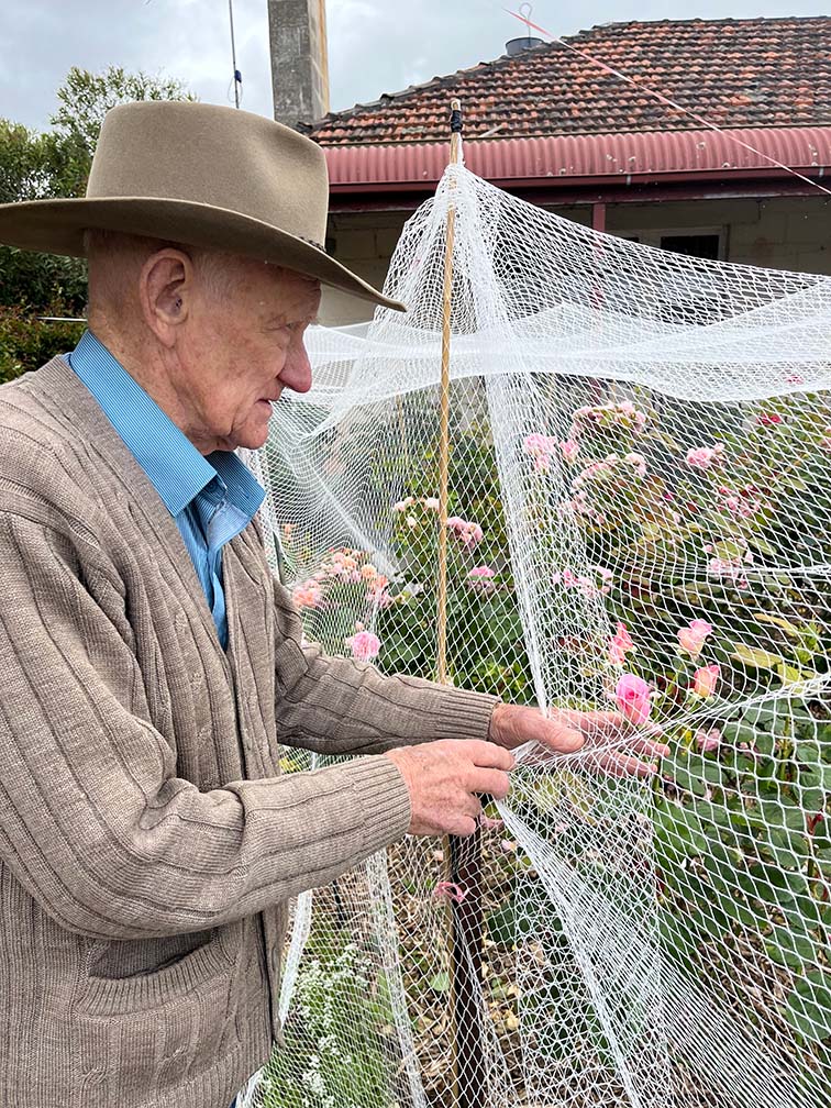 “That’s to stop the parrots – they chew them to pieces if I don’t keep them covered,” he said.