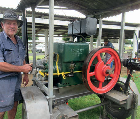 At the Heritage Weekend, Lester Diggles demonstrates his Ronaldson Tippett “CA” Crude Oil Engine. It starts on Kero and runs on sump oil and diesel- there are only 2 in Australia still going. Lester, who now comes from Warwick, grew up on the family property at Glengallan Flats; Ken Peck from Warwick with his pride and joy – a ‘56 Morris Minor in immaculate condition; A big attraction were these super-large Versatile Tractors owned by a Collector near Warwick. Photos: Allora Advertiser
