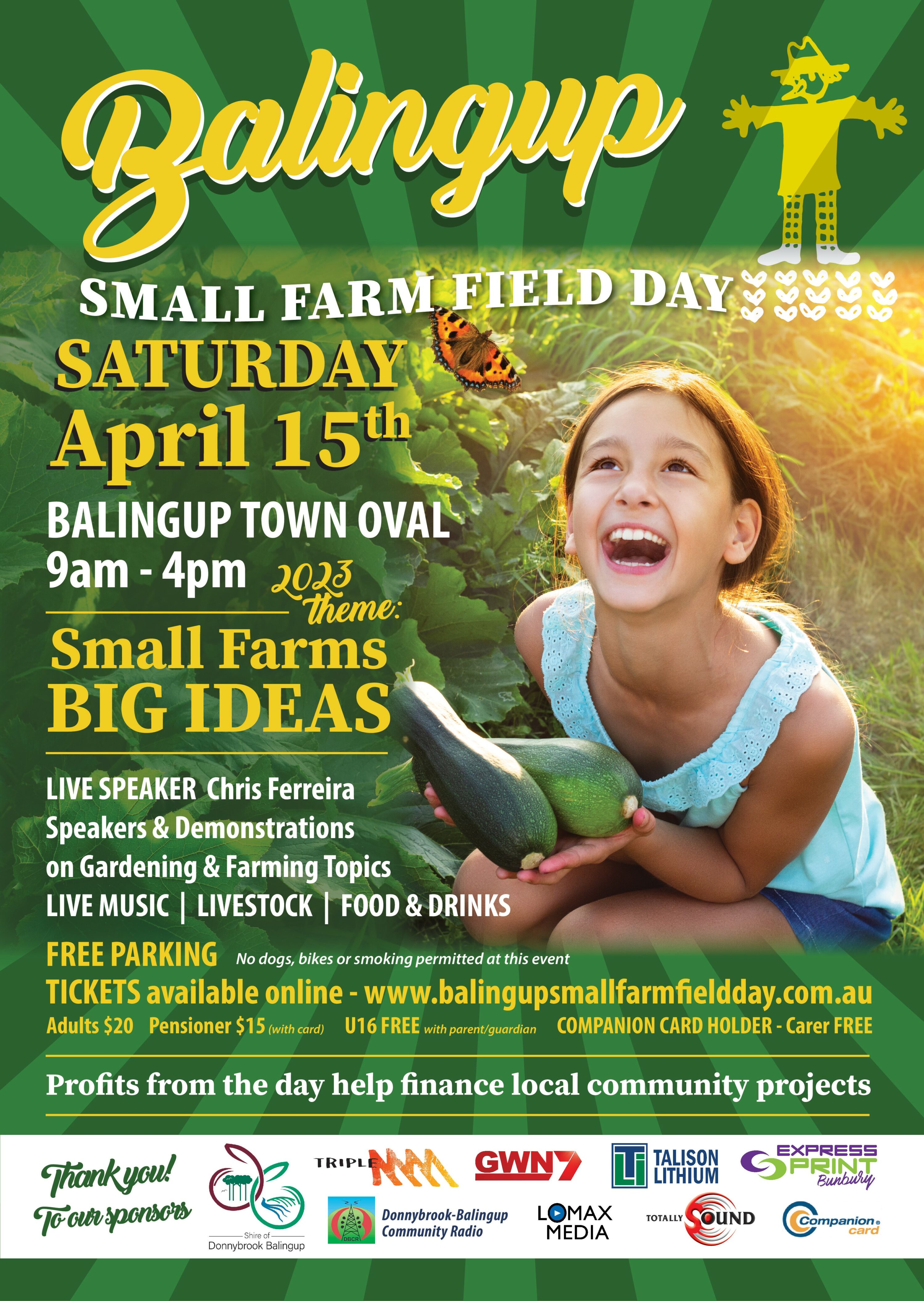 For questions and bookings, please go to: www.balingupsmallfarmfieldday.com.au