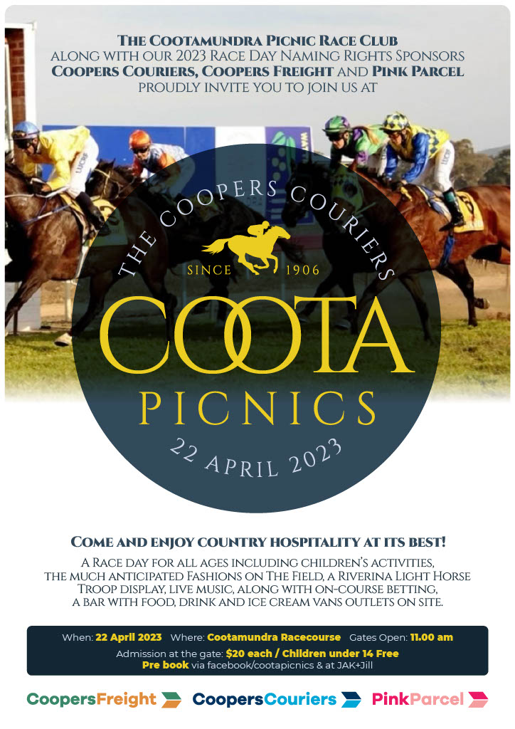 EventPicnic RacesNewsNSWRacing Cootamundra Picnic Races, 22 April 2023 By Contributor, ARR.News 14 April 2023 Recent stories Opening smarter pathways to cut landfill emissions and earn ACCU revenue: Wilson Contributor, ARR.News - Light Horse skills not lost Mark Collins, Corryong Courier - Environmental surveys continue Contributor, The Buloke Times - Farmers’ rights eroded Contributor, The Buloke Times - Fuel crisis hits hard Narrandera Argus - Ramsay local to captain Queensland Polocrosse team Ted Rogers, On Our Selection News - Getting fertiliser to farmers faster: Collins Contributor, ARR.News - $3 million boost drives groundbreaking koala research in Port Stephens: Watt, Swanson Contributor, ARR.News - Whales are making an appearance Coast Community News - Cohuna turns out for barefoot titles opener Contributor, The Koondrook and Barham Bridge Newspaper - Farmer left bone dry after fuel theft Contributor, The Koondrook and Barham Bridge Newspaper - LambEx26 program launch Contributor, ARR.News - Radical Right v Radical Left and the threat of the Age of Unreason Kookaburra, ARR.News - Renewed effort to supercharge faba bean breeding and expansion: GRDC Contributor, ARR.News - Elders bales on WA wool growers – Just the tip of the iceberg: Geoff Pearson WAFarmers Contributor, ARR.News - Load more Contributor, ARR.News Cootamundra Picnic Race Club Please leave this field emptyKEEP IN TOUCH Sign up for updates from Australian Rural & Regional News Manage your subscription We don’t spam! Read our privacy policy for more info. Thank you for subscribing for updates from Australian Rural & Regional News! By default you will receive all our newsletters. If you'd prefer to choose which newsletters you receive, go to the manage your subscription page make your selection. I'd love to hear from you if you have any feedback on the newsletter or the news platform or the news itself. Best Wishes, Fiona Fox The Editor Share FacebookLinkedinXPinterestWhatsAppEmailReddIt Previous articleA fair to rememberNext articleNarrabri Show, 5-7 May 2023 Out Now! Tarrangower Times, 17 April 2026 Tarrangower Times - Clarence Valley Independent, 17 April 2026 Clarence Valley Independent - Corryong Courier, 16 April 2026 Mark Collins, Corryong Courier - Narrandera Argus, 16 April 2026 Narrandera Argus - On Our Selection News, 16 April 2026 Ted Rogers, On Our Selection News - The Buloke Times, 16 April 2026 The Buloke Times - Coast Community News, 16 April 2026 Coast Community News - The Koondrook and Barham Bridge Newspaper, 16 April 2026 Lloyd Polkinghorne, The Koondrook and Barham Bridge Newspaper - See all