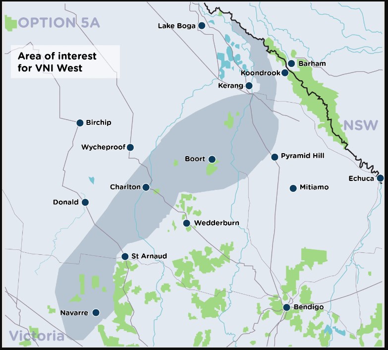 A Ministerial Order has been implemented to progress AEMO’s preferred option, which connects VNI West to the planned Western Renewables Link (WRL) at a terminal station at Bulgana in Victoria’s west, then linking to a terminal station near Kerang in north central Victoria, before crossing the Murray River north of Kerang.