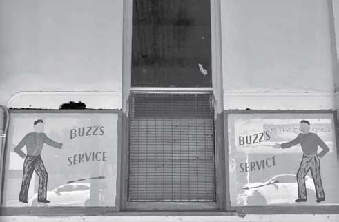 “Service” is what bellboys provide; hence the two caricatures painted on the Opalite on either side of the window.