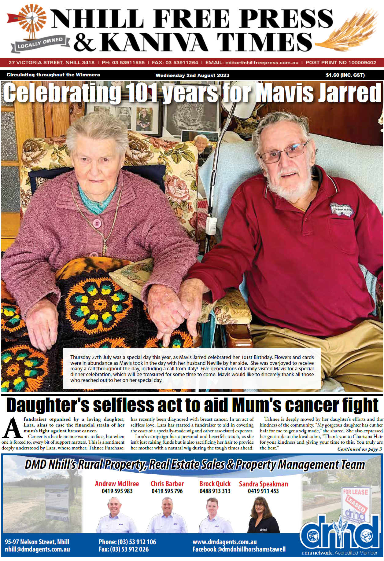 NewsOut now - Archive - August 2023Vic Nhill Free Press & Kaniva Times, 2 August 2023 By Emily Gladdis, Nhill Free Press & Kaniva Times 2 August 2023 Recent stories Opening smarter pathways to cut landfill emissions and earn ACCU revenue: Wilson Contributor, ARR.News - Light Horse skills not lost Mark Collins, Corryong Courier - Environmental surveys continue Contributor, The Buloke Times - Farmers’ rights eroded Contributor, The Buloke Times - Fuel crisis hits hard Narrandera Argus - Ramsay local to captain Queensland Polocrosse team Ted Rogers, On Our Selection News - Getting fertiliser to farmers faster: Collins Contributor, ARR.News - $3 million boost drives groundbreaking koala research in Port Stephens: Watt, Swanson Contributor, ARR.News - Whales are making an appearance Coast Community News - Cohuna turns out for barefoot titles opener Contributor, The Koondrook and Barham Bridge Newspaper - Farmer left bone dry after fuel theft Contributor, The Koondrook and Barham Bridge Newspaper - LambEx26 program launch Contributor, ARR.News - Radical Right v Radical Left and the threat of the Age of Unreason Kookaburra, ARR.News - Renewed effort to supercharge faba bean breeding and expansion: GRDC Contributor, ARR.News - Elders bales on WA wool growers – Just the tip of the iceberg: Geoff Pearson WAFarmers Contributor, ARR.News - Load more Emily Gladdis, Nhill Free Press & Kaniva Timeshttps://www.nhillfreepress.com.au Out now! Please leave this field emptyKEEP IN TOUCH Sign up for updates from Australian Rural & Regional News Manage your subscription We don’t spam! Read our privacy policy for more info. Thank you for subscribing for updates from Australian Rural & Regional News! By default you will receive all our newsletters. If you'd prefer to choose which newsletters you receive, go to the manage your subscription page make your selection. I'd love to hear from you if you have any feedback on the newsletter or the news platform or the news itself. Best Wishes, Fiona Fox The Editor Share FacebookLinkedinXPinterestWhatsAppEmailReddIt Previous articleNaracoorte Community News, 2 August 2023Next articleAllora Advertiser, 2 August 2023 For all the news from Nhill Free Press & Kaniva Times, go to https://www.nhillfreepress.com.au Out Now! Corryong Courier, 16 April 2026 Mark Collins, Corryong Courier - Narrandera Argus, 16 April 2026 Narrandera Argus - On Our Selection News, 16 April 2026 Ted Rogers, On Our Selection News - The Buloke Times, 16 April 2026 The Buloke Times - Coast Community News, 16 April 2026 Coast Community News - The Koondrook and Barham Bridge Newspaper, 16 April 2026 Lloyd Polkinghorne, The Koondrook and Barham Bridge Newspaper - Allora Advertiser, 15 April 2026 Mim Rogers, Allora Advertiser - Murray Pioneer, 15 April 2026 Murray Pioneer - See all Latest stories from Nhill Free Press & Kaniva Times on ARR.News Grandstand opening Emily Gladdis, Nhill Free Press & Kaniva Times - 15 April 2026 Ava’s fight highlights value of Good Friday Appeal Emily Gladdis, Nhill Free Press & Kaniva Times - 8 April 2026 Harmony Day Emily Gladdis, Nhill Free Press & Kaniva Times - 1 April 2026 From lockdown hobby to gallery walls Emily Gladdis, Nhill Free Press & Kaniva Times - 25 March 2026 Warriors clinch title Emily Gladdis, Nhill Free Press & Kaniva Times - 18 March 2026 Gallery Central featured artist: Peter’s pottery Emily Gladdis, Nhill Free Press & Kaniva Times - 11 March 2026 Fastest Wiener in the West to win $200 at Day of the Dackel 2026 Emily Gladdis, Nhill Free Press & Kaniva Times - 4 March 2026 Nhill’s forgotten hotel Emily Gladdis, Nhill Free Press & Kaniva Times - 25 February 2026 Load more