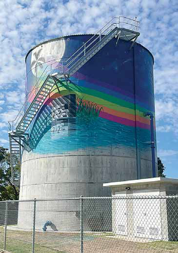 Publicised as a collaboration between Clarence Valley Council (CVC) and Lawrence Public School, and featuring the work of local artist Nitsua, work on the water tower, which depicts the image of a child gazing at the full moon while a rainbow lorikeet flies past leaving a trail of colourful dust in its wake, was completed within the past fortnight.