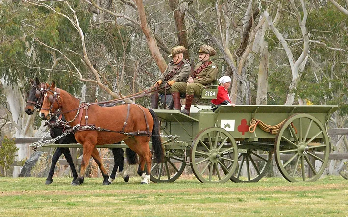 The wagon was escorted by three Light Horse members, two of whom carried the Australian and British flags.