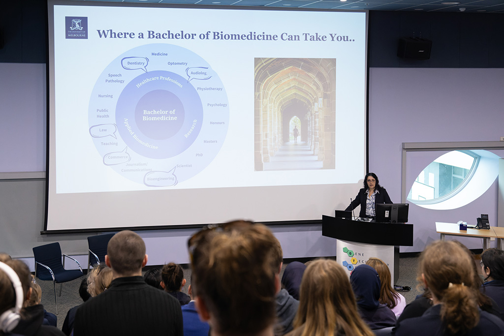 Professor Wilkinson-Berka encouraged students to apply to the Bachelor of Biomedicine after completing their VCE studies. “When you come to Melbourne, you don’t just come to the School of Biomedical Sciences,” she said, “You have access to the whole of the Melbourne Biomedical Precinct, a collaboration of hospitals and research institutes that are right on our doorstep, not to mention the diverse range of career opportunities upon completion of your studies.”