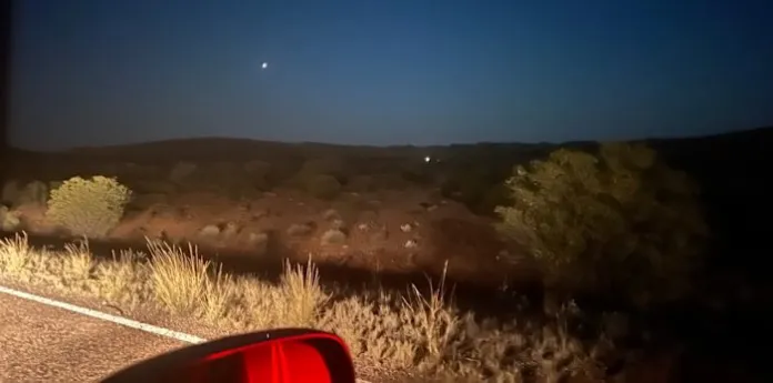 Matt told the [Alice Springs] News he and Dr Taylor were driving east on the Ross Highway, 48 km from town: “There is was. It seemed to be moving lower and closer and then moving higher and east.
