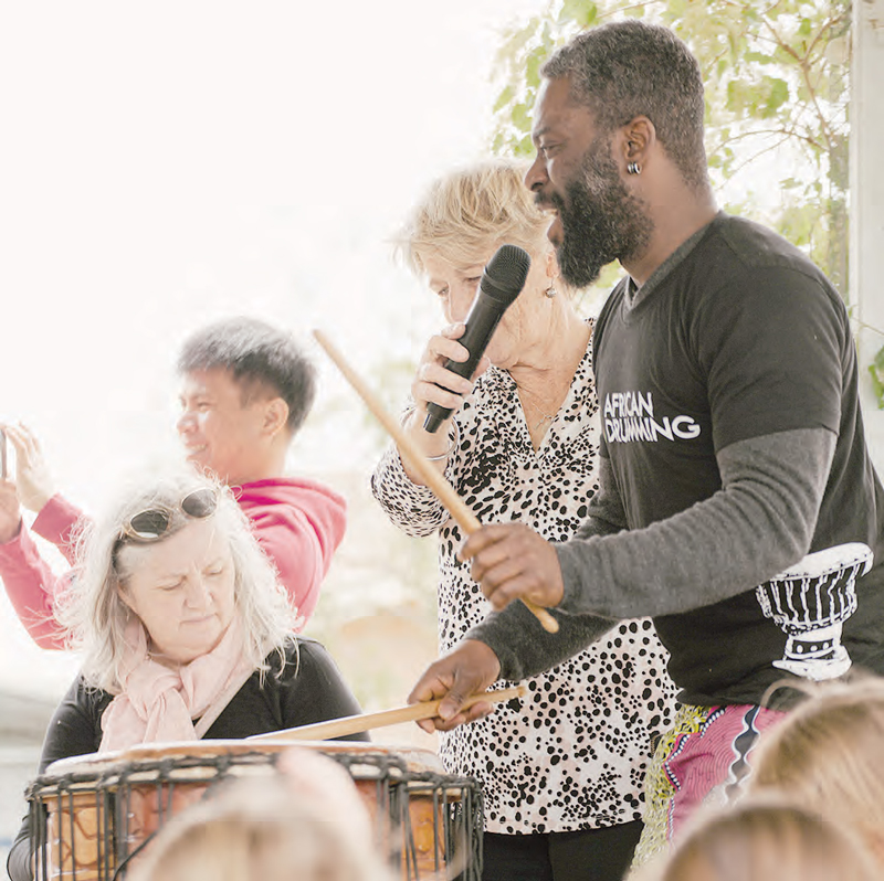 Charmaine Delaney told me the drums were a very comforting memory from her childhood in Africa, and I could empathise, the rhythm was both soothing and catchy. Almost half the crowd joined in the fun and there were literally enough drums to do so.