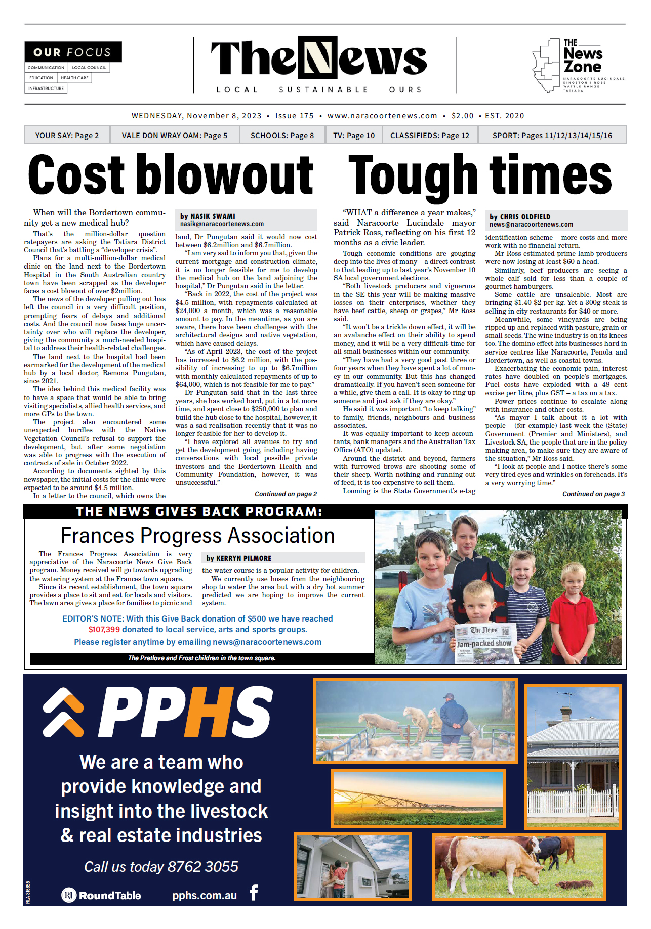 NewsOut now - Archive - November 2023SA Naracoorte Community News, 8 November 2023 By Michael Waite, Naracoorte Community News 8 November 2023 Recent stories Opening smarter pathways to cut landfill emissions and earn ACCU revenue: Wilson Contributor, ARR.News - Light Horse skills not lost Mark Collins, Corryong Courier - Environmental surveys continue Contributor, The Buloke Times - Farmers’ rights eroded Contributor, The Buloke Times - Fuel crisis hits hard Narrandera Argus - Ramsay local to captain Queensland Polocrosse team Ted Rogers, On Our Selection News - Getting fertiliser to farmers faster: Collins Contributor, ARR.News - $3 million boost drives groundbreaking koala research in Port Stephens: Watt, Swanson Contributor, ARR.News - Whales are making an appearance Coast Community News - Cohuna turns out for barefoot titles opener Contributor, The Koondrook and Barham Bridge Newspaper - Farmer left bone dry after fuel theft Contributor, The Koondrook and Barham Bridge Newspaper - LambEx26 program launch Contributor, ARR.News - Radical Right v Radical Left and the threat of the Age of Unreason Kookaburra, ARR.News - Renewed effort to supercharge faba bean breeding and expansion: GRDC Contributor, ARR.News - Elders bales on WA wool growers – Just the tip of the iceberg: Geoff Pearson WAFarmers Contributor, ARR.News - Load more Michael Waite, Naracoorte Community Newshttps://www.naracoortenews.com/ Out now! Buy here! Please leave this field emptyKEEP IN TOUCH Sign up for updates from Australian Rural & Regional News Manage your subscription We don’t spam! Read our privacy policy for more info. Thank you for subscribing for updates from Australian Rural & Regional News! By default you will receive all our newsletters. If you'd prefer to choose which newsletters you receive, go to the manage your subscription page make your selection. I'd love to hear from you if you have any feedback on the newsletter or the news platform or the news itself. Best Wishes, Fiona Fox The Editor Share FacebookLinkedinXPinterestWhatsAppEmailReddIt Previous articleAllora Advertiser, 8 November 2023Next articleOptus crash a reminder why we need banks to stay open: Rennick, Canavan For all the news from Naracoorte Community News, go to https://www.naracoortenews.com/ Out Now! Corryong Courier, 16 April 2026 Mark Collins, Corryong Courier - Narrandera Argus, 16 April 2026 Narrandera Argus - On Our Selection News, 16 April 2026 Ted Rogers, On Our Selection News - The Buloke Times, 16 April 2026 The Buloke Times - Coast Community News, 16 April 2026 Coast Community News - The Koondrook and Barham Bridge Newspaper, 16 April 2026 Lloyd Polkinghorne, The Koondrook and Barham Bridge Newspaper - Allora Advertiser, 15 April 2026 Mim Rogers, Allora Advertiser - Murray Pioneer, 15 April 2026 Murray Pioneer - See all Latest stories from Naracoorte Community News on ARR.News Naracoorte’s rising star Nasik Swami, Naracoorte Community News - 15 April 2026 I am ready to get to work Nasik Swami, Naracoorte Community News - 8 April 2026 Mayor pay push splits council Nasik Swami, Naracoorte Community News - 1 April 2026 “I am sorry” – McBride ends political career Nasik Swami, Naracoorte Community News - 25 March 2026 NLC supports cave research Chris Oldfield, Naracoorte Community News - 18 March 2026 Who will it be? Nine-way race for MacKillop Nasik Swami, Naracoorte Community News - 11 March 2026 Radiotherapy wins backing from MacKillop candidates Nasik Swami, Naracoorte Community News - 4 March 2026 Minor doctor share: Just three of 12 new interns based locally despite ‘major service centre’ status Nasik Swami, Naracoorte Community News - 25 February 2026 Load more