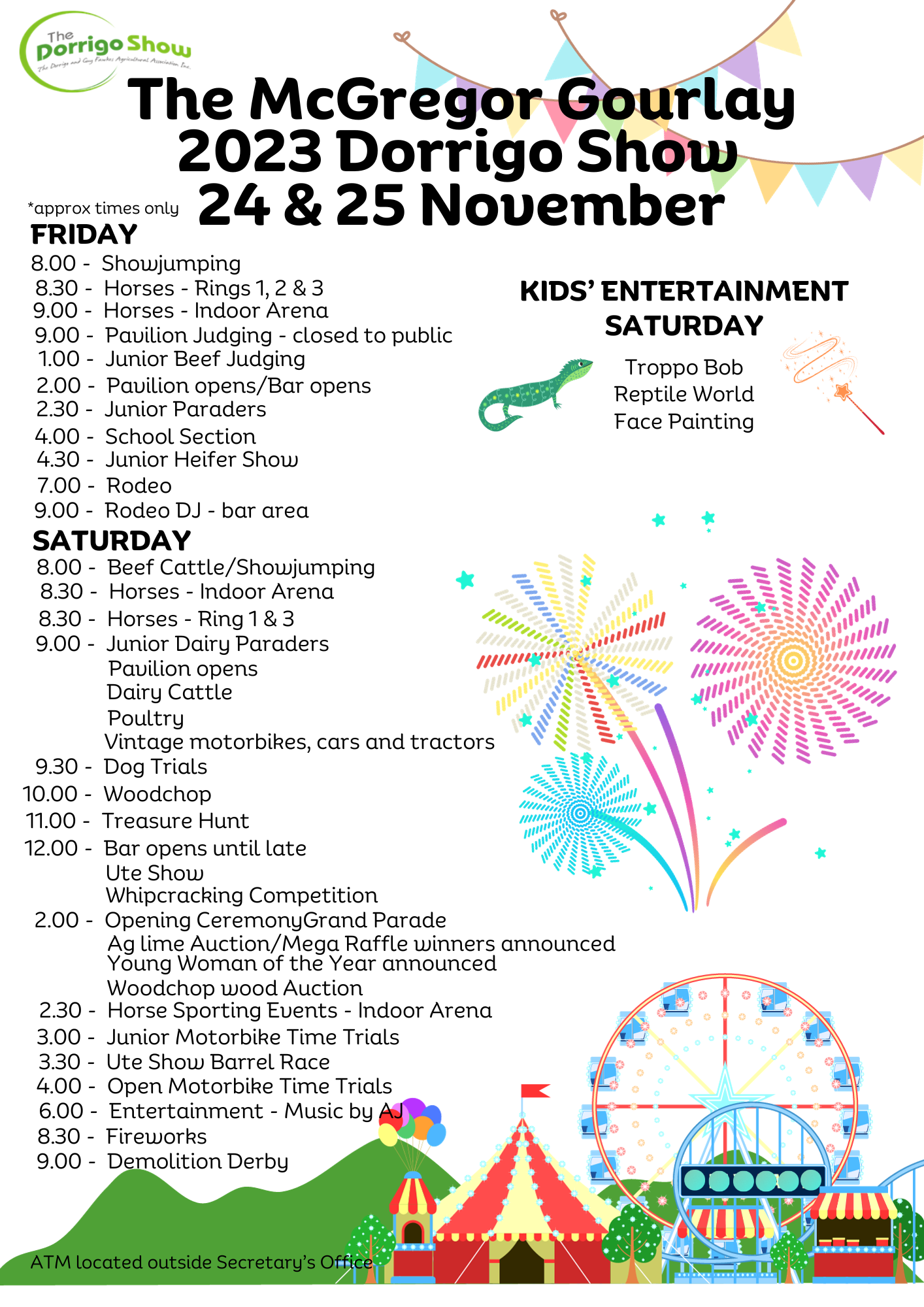 We are having famous local identity, Mark Donaldson VC will be our Guest of Honour to open the Show. We are strongly promoting our Rodeo on the Friday night and a return of the Demolition Derby of the Saturday night after our Fireworks. We also have a large range of food trucks and vans – more than in previous years – as well as a record number of traders.