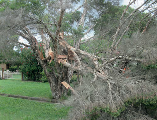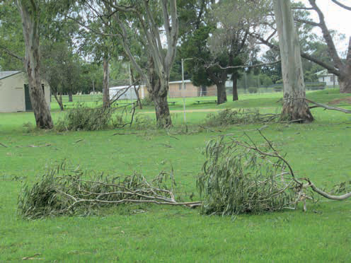 L-R: SDRC soon arrived to remove this damaged tree in Arnold Street; Plenty of branches down in the school grounds; Tree down on corner of Forde and Warwick Streets.
