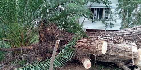 On the corner of Forde and Warwick Streets two huge old gumtrees were torn out of the ground, roots and all.
