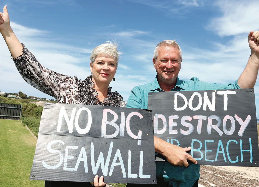 The friends group was adamant the town didn’t need defences for rising sea levels, recruiting marine biologist John Douglas to help its case, and argued a structure of such size would “obliterate” the beach.