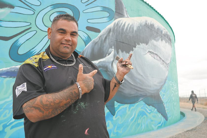 Minlacowie’s tank was completed in just nine days by Mike Makatron, Conrad Bizjak, Dylan Butler and Narungga artist Harley Hall, and displays the four Narungga totems — the Garrdi (emu), Wawi (female red kangaroo), Widhadha (shark) and Wildu (eagle).
