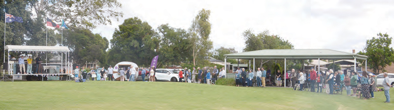 So, in closing and professing gratitude for all gathered at the park, Lisa thanked the Donald 2000 committee, S & A Coffee van, and Lions Club for hosting the day, invited everyone to enjoy the barbecue (and the delicious guava, pineapple and passionfruit Filipino fruit juice provided by Corazon Stopps), and have fun at the brand-new Memorial Park playground facilities.