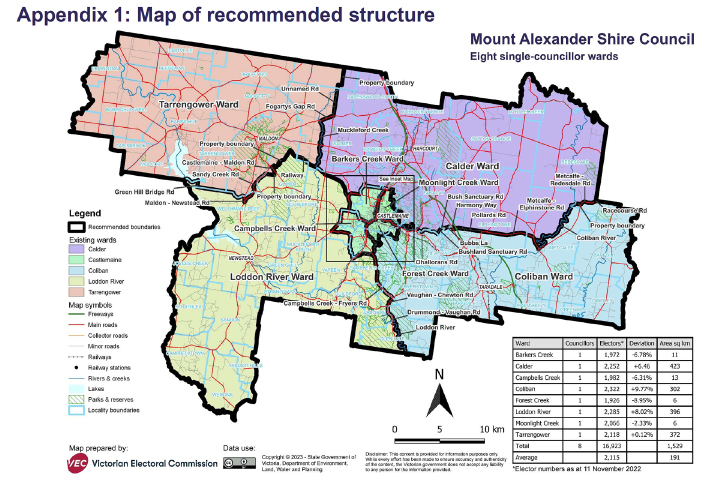 Mount Alexander Shire Council advocated for a single-councillor ward structure but supported seven councillors rather than eight.