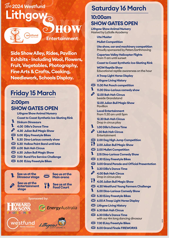 AgricultureEventShowsFarmingNewsNSW 2024 Westfund Lithgow Show, 15-16 March 2024 By Contributor, ARR.News 14 March 2024 Recent stories Upcoming webinar – What’s it take to develop offshore wind in Australia? Blue Economy CRC Contributor, ARR.News - Restoration brings Flinders and Freycinet statues back to life Contributor, ARR.News - Delivering free GP appointments for Northern Tasmania: Archer Contributor, ARR.News - Seven Cities to drive next wave of regional economic development: Cook, Dawson Contributor, ARR.News - Territory positions itself at centre of national defence push: Finocchiaro Contributor, ARR.News - SLSNSW distributes publicly accessible shark bite kits to all NSW surf clubs: SLSNSW Contributor, ARR.News - Queensland Dinosaur Week 2026 roars into Hughenden and Flinders Shire Contributor, ARR.News - Banks must dump Environmental, Social and Governance ‘woke’ agenda for coal, gas and oil: McDonald, Canavan, Hogan Contributor, ARR.News - Millie, the BreastScreenNT bus to complete final tour in 2026: NT Health Contributor, ARR.News - When ideology meets the fuel tank Trevor Whittington, CEO WAFarmers - ANZAC Special, plus we get the debrief on Buddy suiting up for Dowerin with Tracy Jones! No Drama Farmer - Editor is Lismore Local Woman of the Year Contributor, indyNR.com - Algal bloom testing results continue positive trend: Malinauskas, Scriven Contributor, ARR.News - Rare native lilies spotted flowering on stock reserve north of Deniliquin Kimberly Grabham, Back Country Bulletin - ANZAC Day a good time to gauge Middle East crisis Erwin Chlanda, Alice Springs News - Load more Contributor, ARR.News Lithgow Show Society Inc. Please leave this field emptyKEEP IN TOUCH Sign up for updates from Australian Rural & Regional News Manage your subscription We don’t spam! Read our privacy policy for more info. Thank you for subscribing for updates from Australian Rural & Regional News! By default you will receive all our newsletters. If you'd prefer to choose which newsletters you receive, go to the manage your subscription page make your selection. I'd love to hear from you if you have any feedback on the newsletter or the news platform or the news itself. Best Wishes, Fiona Fox The Editor Share FacebookLinkedinXPinterestWhatsAppEmailReddIt Previous articlePolice operation marks one yearNext articleChurch closing its doors Out Now! Tarrangower Times, 24 April 2026 Tarrangower Times - Clarence Valley Independent, 24 April 2026 Clarence Valley Independent - On Our Selection News, 23 April 2026 Ted Rogers, On Our Selection News - Allora Advertiser, 22 April 2026 Mim Rogers, Allora Advertiser - The Buloke Times, 23 April 2026 The Buloke Times - Narrandera Argus, 23 April 2026 Narrandera Argus - Denmark Bulletin, 23 April 2026 Denmark Bulletin - Corryong Courier, 23 April 2026 Mark Collins, Corryong Courier - See all