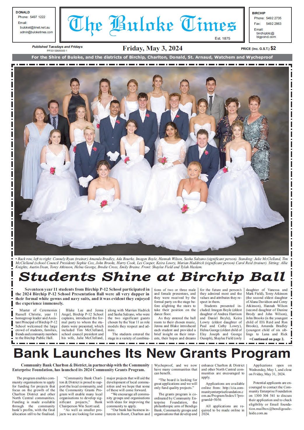NewsOut now - Archive - May 2024Vic The Buloke Times, 3 May 2024 By The Buloke Times 3 May 2024 Recent stories Fertiliser shortage at home, subsidies for exports abroad Trevor Whittington, CEO WAFarmers - Council is running effectively – OLG Rodney Stevens, Clarence Valley Independent - Newstead medical physicist grateful to help community Contributor, Tarrangower Times - Old wool table now looks classy Mim Rogers, Allora Advertiser - New Australia-United Kingdom MOU to unlock more investment: Chalmers, Reeves Contributor, ARR.News - Country Cabinet to continue under re-elected Malinauskas Government: Malinauskas Contributor, ARR.News - Public artwork commission to celebrate Loddon riverbanks Contributor, ARR.News - Don’t risk a bite to the hand that feeds Contributor, ARR.News - Watch My Cousin Frank on SBS On Demand: NORPA Contributor, ARR.News - Welcoming Hurford Hardwood as a NORPA Partner: NORPA Contributor, ARR.News - Killing koalas with kindness: Vic Jurskis Vic Jurskis - Opening smarter pathways to cut landfill emissions and earn ACCU revenue: Wilson Contributor, ARR.News - Light Horse skills not lost Mark Collins, Corryong Courier - Environmental surveys continue Contributor, The Buloke Times - Farmers’ rights eroded Contributor, The Buloke Times - Load more The Buloke Timeshttps://www.buloketimes.com Out now! Buy here! Please leave this field emptyKEEP IN TOUCH Sign up for updates from Australian Rural & Regional News Manage your subscription We don’t spam! Read our privacy policy for more info. Thank you for subscribing for updates from Australian Rural & Regional News! By default you will receive all our newsletters. If you'd prefer to choose which newsletters you receive, go to the manage your subscription page make your selection. I'd love to hear from you if you have any feedback on the newsletter or the news platform or the news itself. Best Wishes, Fiona Fox The Editor Share FacebookLinkedinXPinterestWhatsAppEmailReddIt Previous articleTarrangower Times, 3 May 2024Next articleTennant & District Times, 3 May 2024 For all the news from The Buloke Times, go to https://www.buloketimes.com/ Out Now! Tarrangower Times, 17 April 2026 Tarrangower Times - Clarence Valley Independent, 17 April 2026 Clarence Valley Independent - Corryong Courier, 16 April 2026 Mark Collins, Corryong Courier - Narrandera Argus, 16 April 2026 Narrandera Argus - On Our Selection News, 16 April 2026 Ted Rogers, On Our Selection News - The Buloke Times, 16 April 2026 The Buloke Times - Coast Community News, 16 April 2026 Coast Community News - The Koondrook and Barham Bridge Newspaper, 16 April 2026 Lloyd Polkinghorne, The Koondrook and Barham Bridge Newspaper - See all Latest stories from The Buloke Times on ARR.News Environmental surveys continue Contributor, The Buloke Times - 16 April 2026 Farmers’ rights eroded Contributor, The Buloke Times - 16 April 2026 In its 75th year – CFA raises $2.1 million for sick kids The Buloke Times - 9 April 2026 More murals for Donald Contributor, The Buloke Times - 2 April 2026 Birchip silo art reaches finish post The Buloke Times - 26 March 2026 A lifetime of achievements awarded The Buloke Times - 19 March 2026 Art and culture shine at Mali Heart Festival The Buloke Times - 12 March 2026 Ripper rainfall across the region The Buloke Times - 5 March 2026 Load more