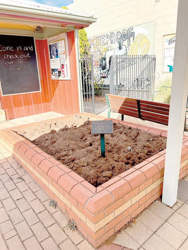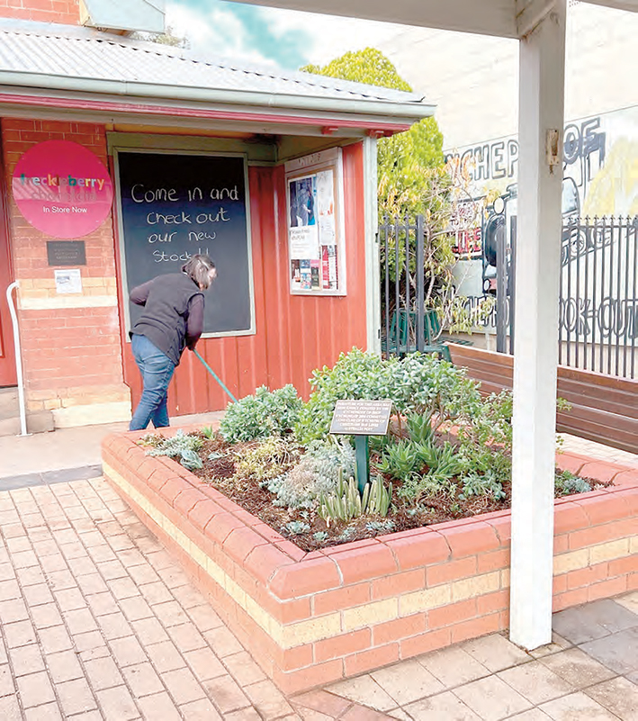 L-R: The planter box is well prepped with soil prior to the garden make-over; All for a good cause. Andrea was captured actively sweeping, planting, watering planter beds – you name it. The Post Office is currently boasting a well-presented business frontage, with clean seats and some visually appealing succulent plantings, all donated via Andrea from her own garden. What a green thumb! A visually spectacular planter box now greets customers and visitors alike at the front of the Post Office. Photos courtesy The Buloke Times