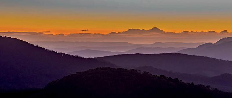 Early riser, Trevor caught the pastel shades of the first light of day illuminating the fog filled valleys below a mountain range. “Morning Glory” also scored an Honour.