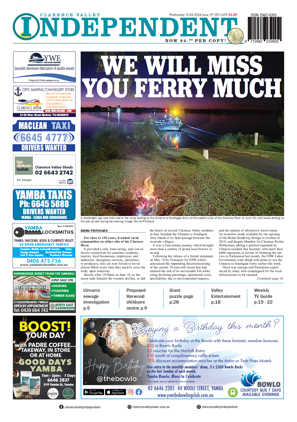 NewsNSWOut now - Archive - June 2024 Clarence Valley Independent, 12 June 2024 By Clarence Valley Independent 12 June 2024 Recent stories When ideology meets the fuel tank Trevor Whittington, CEO WAFarmers - ANZAC Special, plus we get the debrief on Buddy suiting up for Dowerin with Tracy Jones! No Drama Farmer - Editor is Lismore Local Woman of the Year Contributor, indyNR.com - Algal bloom testing results continue positive trend: Malinauskas, Scriven Contributor, ARR.News - Rare native lilies spotted flowering on stock reserve north of Deniliquin Kimberly Grabham, Back Country Bulletin - ANZAC Day a good time to gauge Middle East crisis Erwin Chlanda, Alice Springs News - Gun buyback hits wall as majority of states refuse to sign up Kimberly Grabham, Back Country Bulletin - Tony Ball stable dominates at Port on Sunday Rod Fuller - Work begins at Fingerboards demo pit following mobilisation by local contractors: Gippsland Critical Minerals Contributor, ARR.News - Groundswell against the mine: Mine Free Glenaladale Contributor, ARR.News - Quiz #14/2026 Tom Trifonoff - Quiz #13/2026 Tom Trifonoff - Quiz #12/2026 Tom Trifonoff - I don’t sleep I just dream: unrefined in high definition Contributor, ARR.News - Youth Week rolls through Broome with strong community turnout Contributor, ARR.News - Load more Clarence Valley Independenthttps://clarencevalleynews.com.au/ Out now! Buy here! Please leave this field emptyKEEP IN TOUCH Sign up for updates from Australian Rural & Regional News Manage your subscription We don’t spam! Read our privacy policy for more info. Thank you for subscribing for updates from Australian Rural & Regional News! By default you will receive all our newsletters. If you'd prefer to choose which newsletters you receive, go to the manage your subscription page make your selection. I'd love to hear from you if you have any feedback on the newsletter or the news platform or the news itself. Best Wishes, Fiona Fox The Editor Share FacebookLinkedinXPinterestWhatsAppEmailReddIt Previous articleAustralia and Japan to strengthen horticulture ties: Hort InnovationNext articleNhill Free Press & Kaniva Times, 12 June 2024 For all the news from the Clarence Valley Independent, go to https://clarencevalleynews.com.au/ Out Now! Tarrangower Times, 24 April 2026 Tarrangower Times - Clarence Valley Independent, 24 April 2026 Clarence Valley Independent - On Our Selection News, 23 April 2026 Ted Rogers, On Our Selection News - Allora Advertiser, 22 April 2026 Mim Rogers, Allora Advertiser - The Buloke Times, 23 April 2026 The Buloke Times - Narrandera Argus, 23 April 2026 Narrandera Argus - Denmark Bulletin, 23 April 2026 Denmark Bulletin - Corryong Courier, 23 April 2026 Mark Collins, Corryong Courier - See all Latest stories from the Clarence Valley Independent on ARR.News “Price crunch” – societal implications of conflict Rodney Stevens, Clarence Valley Independent - 24 April 2026 Council is running effectively – OLG Rodney Stevens, Clarence Valley Independent - 17 April 2026 International affair at Highland Gathering Rodney Stevens, Clarence Valley Independent - 10 April 2026 121st Maclean Highland Gathering Rodney Stevens, Clarence Valley Independent - 2 April 2026 Unanimous vote shows what matters Emma Pritchard, Clarence Valley Independent - 27 March 2026 Sparkling moment as new Assistant Bishop consecrated Emma Pritchard, Clarence Valley Independent - 20 March 2026 Bluesfest in liquidation, 2026 cancelled Rodney Stevens, Clarence Valley Independent - 20 March 2026 Celebrating our local women Contributor, Clarence Valley Independent - 13 March 2026 Load more