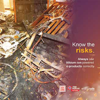 - Larger batteries and equipment such as power tools and especially electric bikes, scooters or skateboards should be charged in the garage, shed or carport away from living spaces.