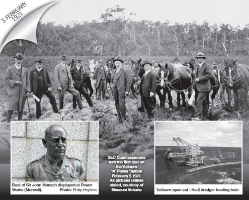 In February 1921, under the watchful eyes of SEC commissioners, horse-drawn ploughs turned the first sod on the site of the permanent Yallourn A power station. Then in April 1921, teams of men, horses and drays and later steam shovels began clearing the soil to uncover the coal.