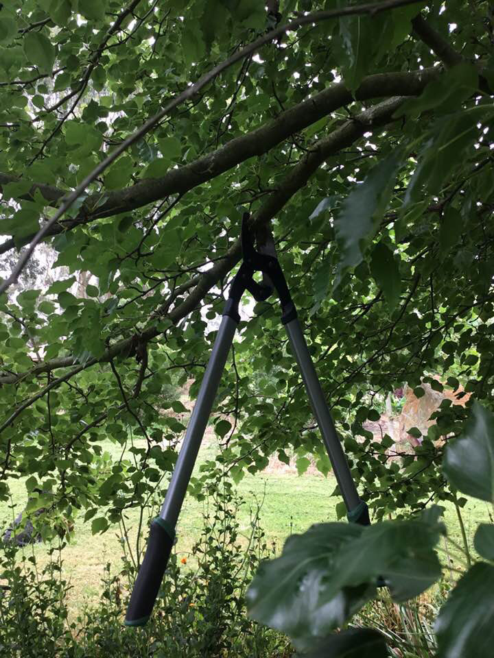 However hard I tried, the branch remained. Unfortunately, so did the shears. I couldn’t get them to open. They stuck there hanging from the branch.
