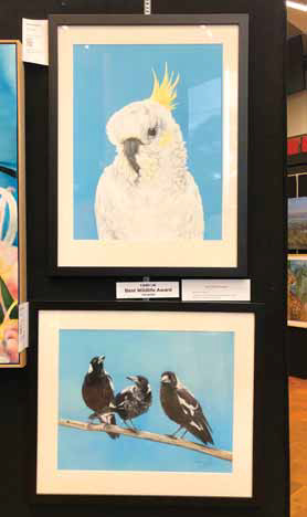 Local magpie family, known as Hilary, Martin and Princess have come first in the wildlife section of the Camberwell Rotary Art Show.