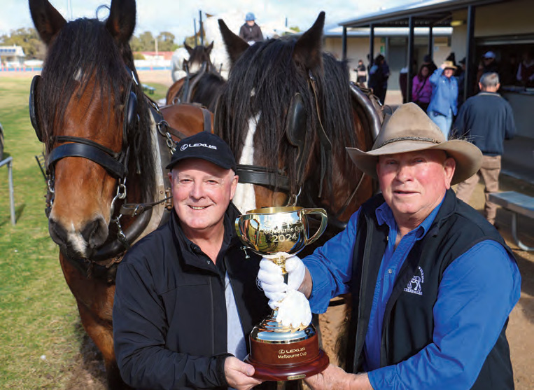 Barellan Working Clydesdales hosted the famous trophy on July 10, along with Lexus Melbourne Cup Tour ambassador and legendary race caller Greg Miles, and Ryan Kellam, Victoria Racing Club.
