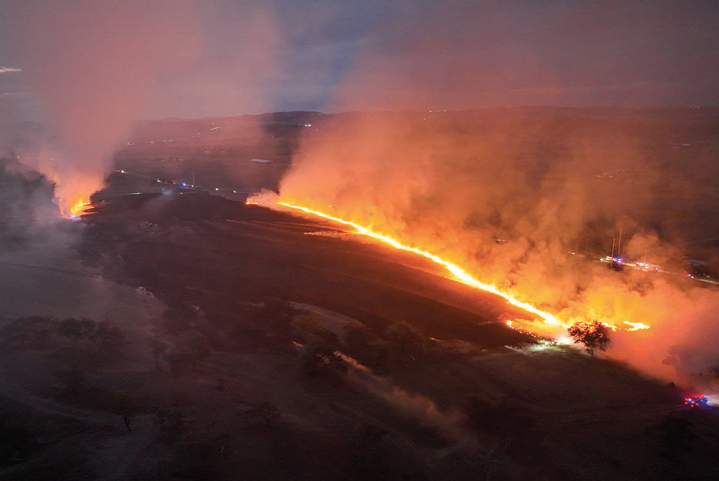 As the fire spread across the dry grassland on the western side of the highway, more personnel gathered at the scene, with eventually five units from the Cambooya Rural Brigade and teams from West Pittsworth, Felton, Massie and two urban fire teams fighting the blaze.