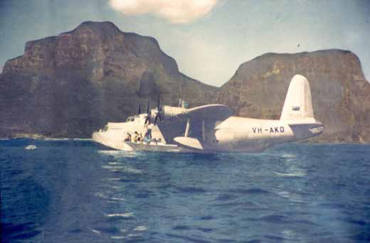 However, circumstances gave Brian an unexpected opportunity: “Having delivered the propeller shaft [to Fiji] we took off on the return flight to Sydney”¦setting a course that would take us over the southern tip of New Caledonia, then over to Lord Howe Island”¦The island was long, narrow hilly and even mountainous at one end. ”¦the large coral reef protected lagoon was ideal for flying boat operation.