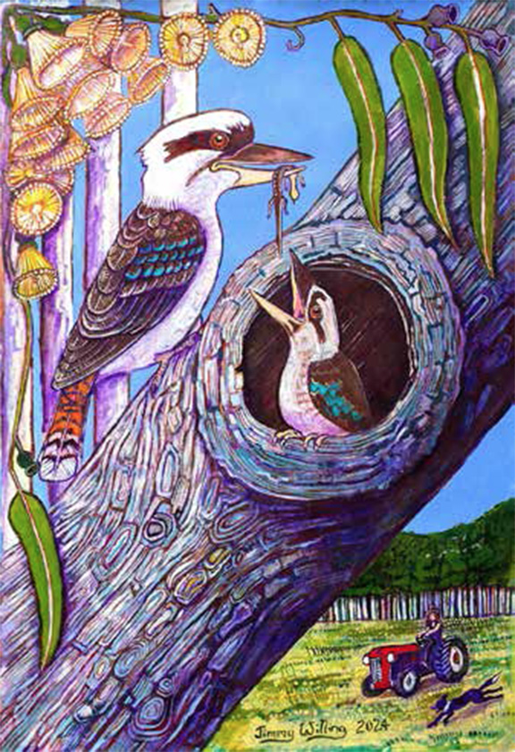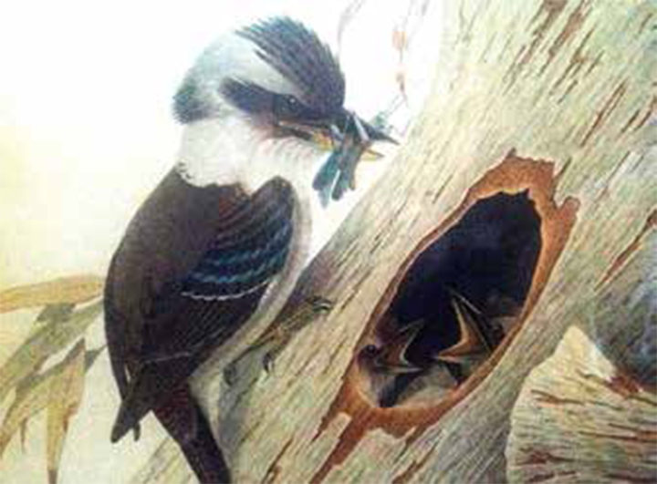One of the paintings was of nesting Wonga pigeons but it was the painting ‘Kookaburra Feeding its Young’ (pictured) that etched itself into my mind.