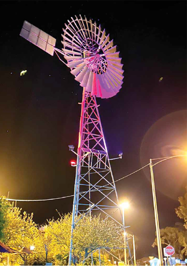 The night sky in Kaniva has a new star attraction: a colour-changing windmill, the crowning achievement of a three-year community-driven lighting project that has transformed the town’s main street. From purple to blue, red, green, and gold, the windmill now lights up with subtle hues, adding a splash of color to the town’s nighttime landscape.