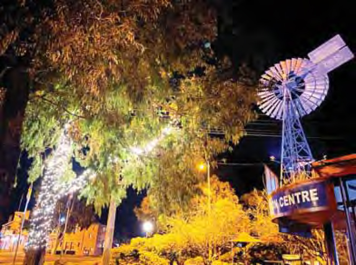 This week, along with the windmill lighting installation, included the completion of the seventh tree lit with commercial quality, solar powered, fairy lights, on the windmill corner. This project, designed to brighten the town and create a welcoming atmosphere by night, aims to further establish Kaniva as the gateway into Victoria. The newly lit windmill and street trees will support local hospitality businesses and accommodation operators by drawing in more visitors and encouraging longer stays.