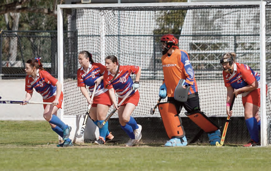 St Arnaud quickly responded with a pass from Kate Gifford to Brylea Swanton at the centre line, who made a run down the pitch into the D. Her shot on goal was deflected by Addison Wright’s stick, sending the ball into the net for the opening score. Some poor tackling from both sides led to each team losing a player temporarily to the bench.