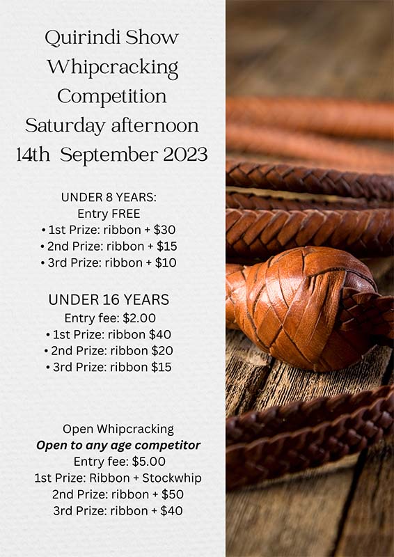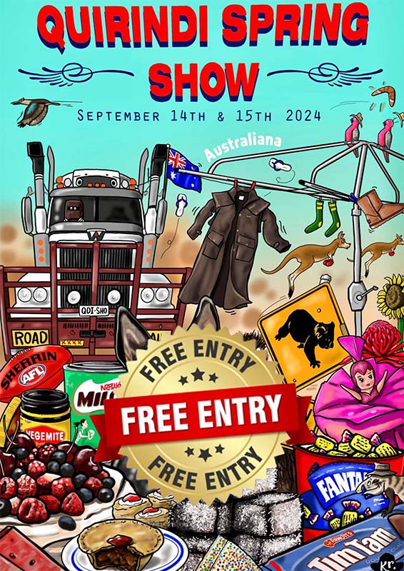 Other Quirindi Show staples on offer include pavilion exhibits, a meat smoking demonstration, show jumping, working dog trials, cattle and poultry showing, market stalls and whip cracking.